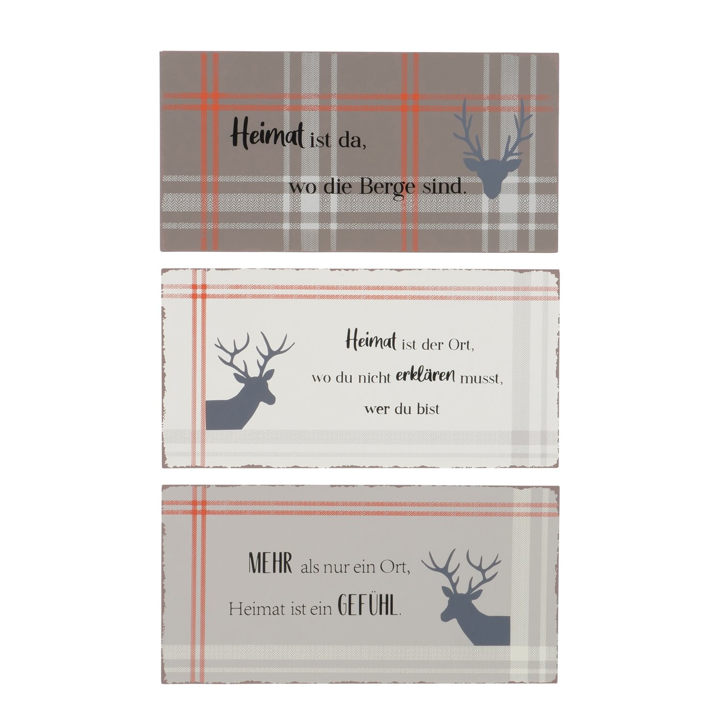Schild Hirsch Karo, Metallschild Heimat ist da..., 40x20cm, Boltze Home Collections