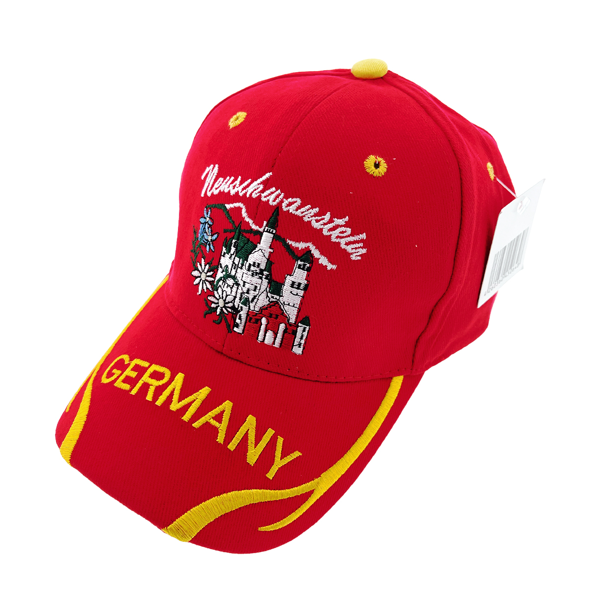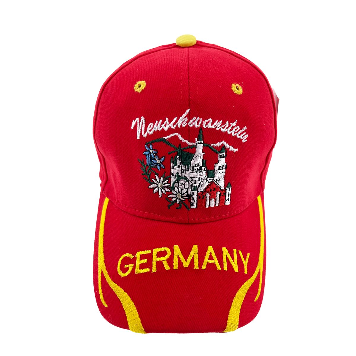 Schildmütze Neuschwanstein Germany rot, Schloß Neuschwanstein und Edelweiß