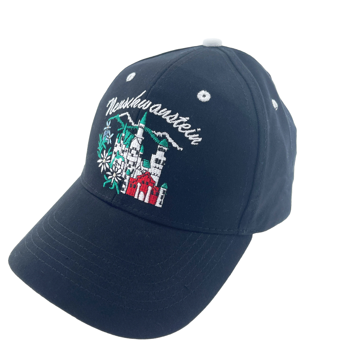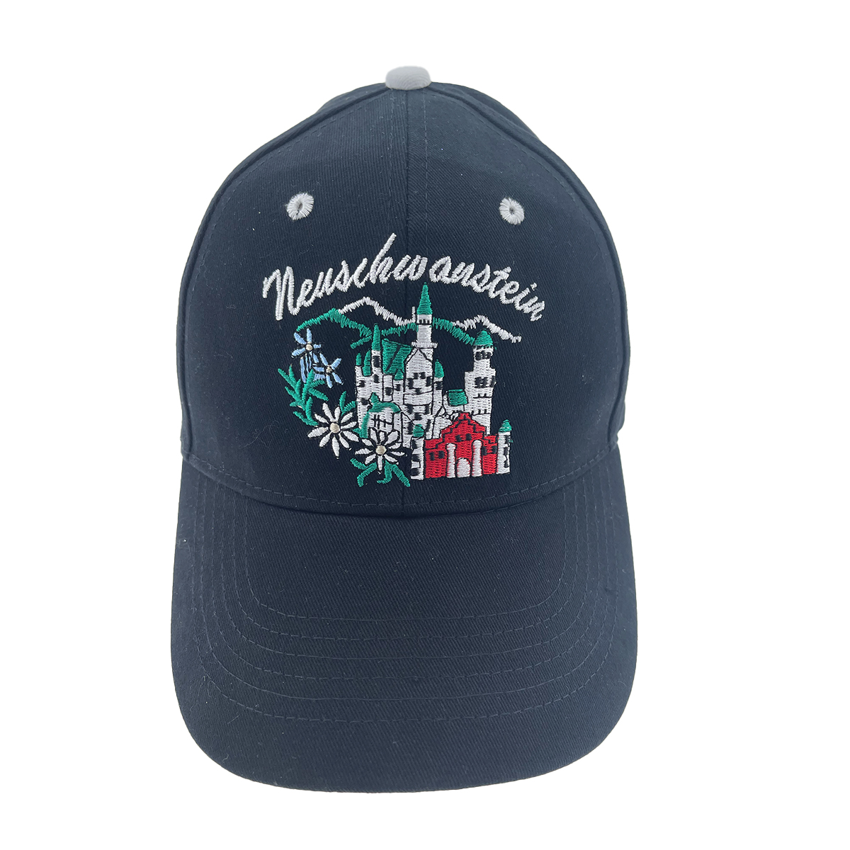 Schildmütze Neuschwanstein schwarz, Schloß Neuschwanstein und Edelweiß