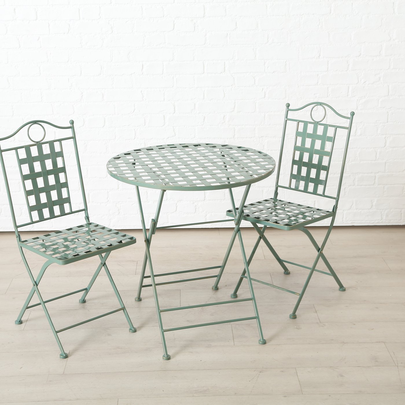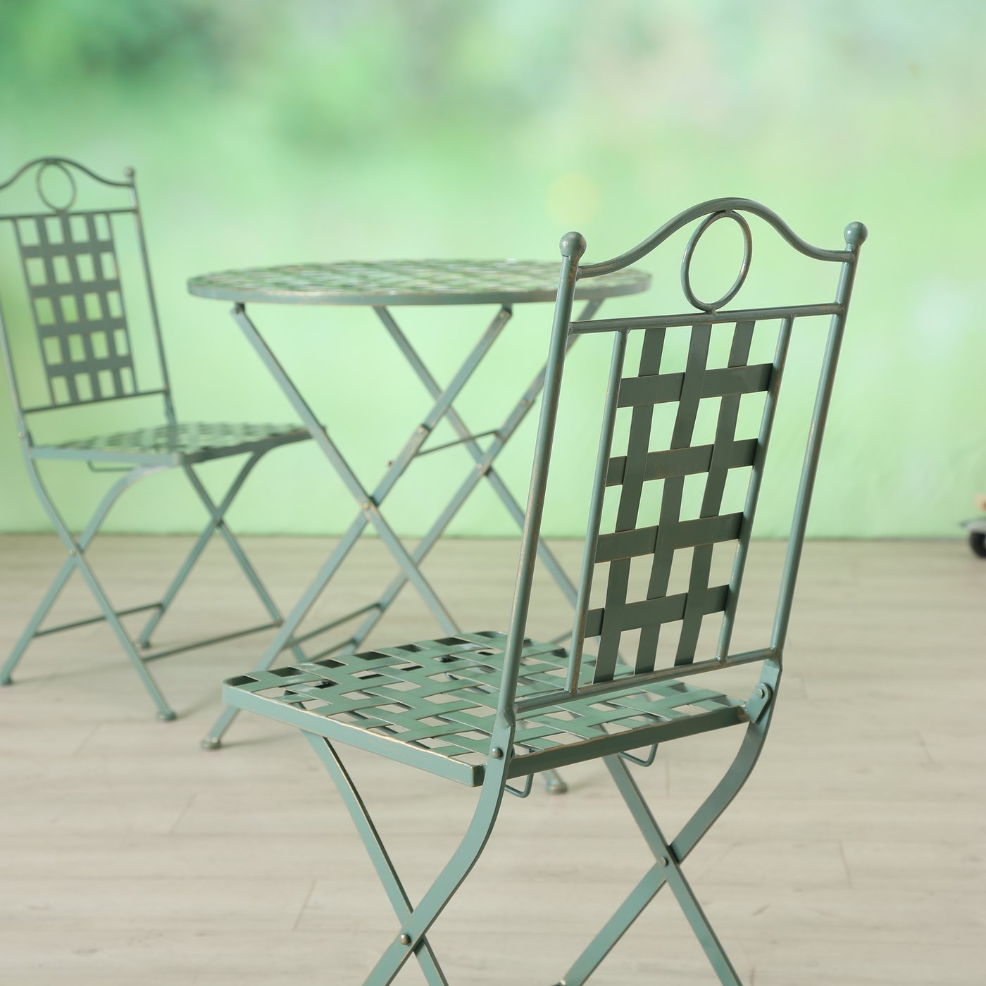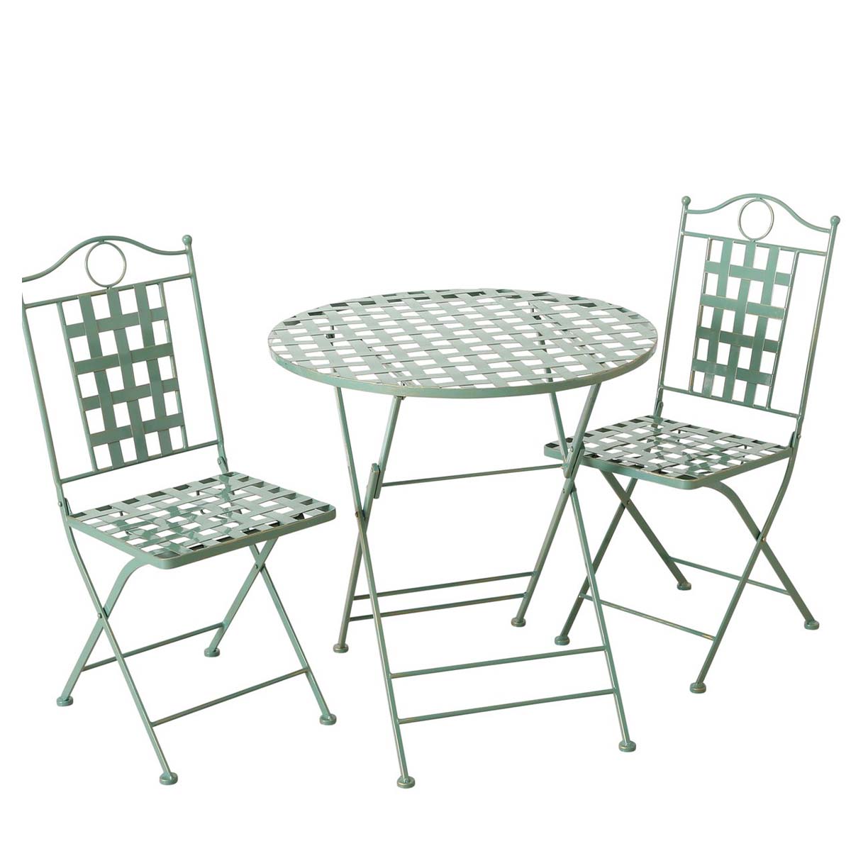 Sitzgruppe Landhaus Patio, grün, 2 Stühle, 1 Tisch, Metall, Boltze Home Collections