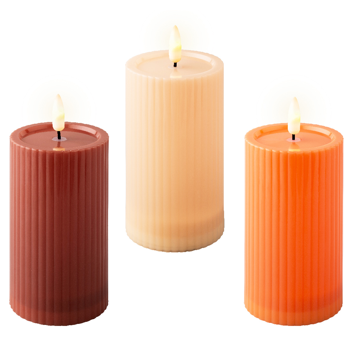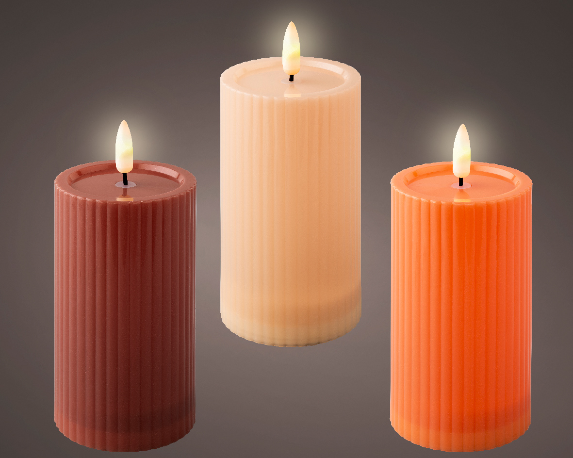 Solar Kerze orange, Kerze mit Rillen,12cm, Lumineo