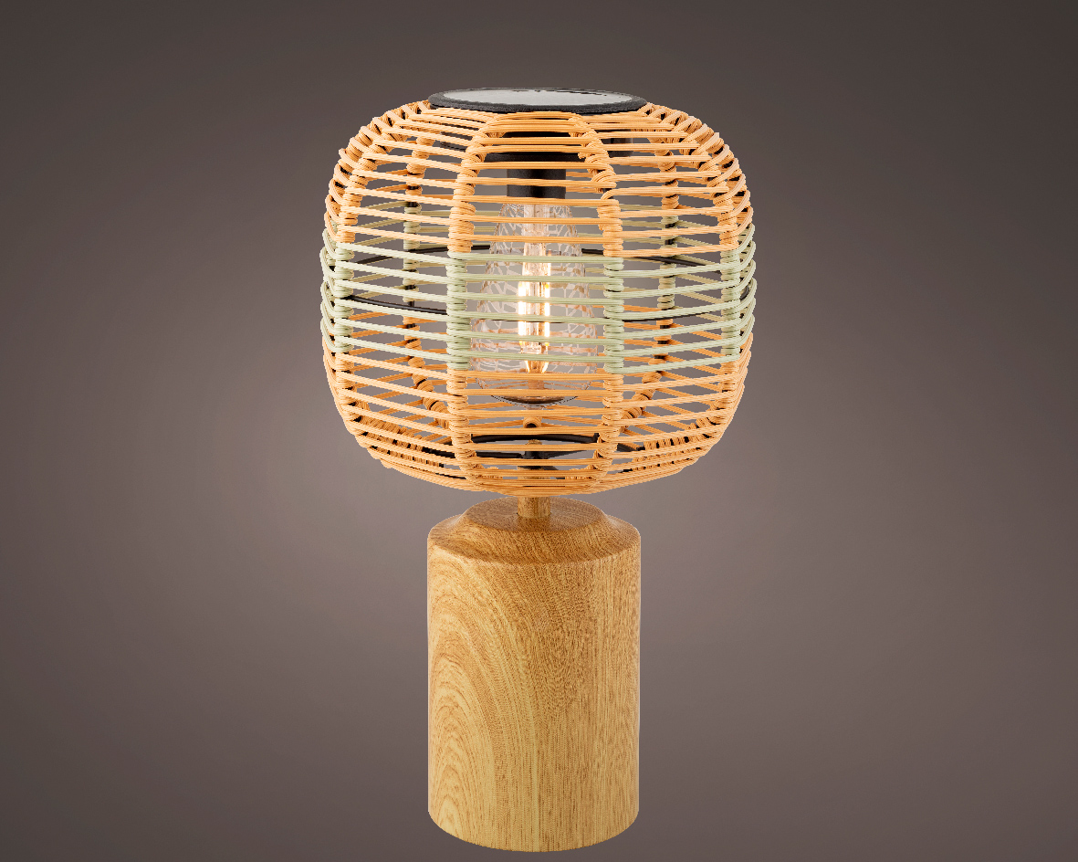 Solar Tischlampe Lampenschirm Korb mit Standfuß in Holzoptik, 36cm