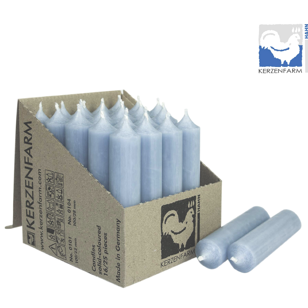 Stabkerze taubenblau rustikal, Wachskerze, 100x22mm, Kerzenfarm Hahn