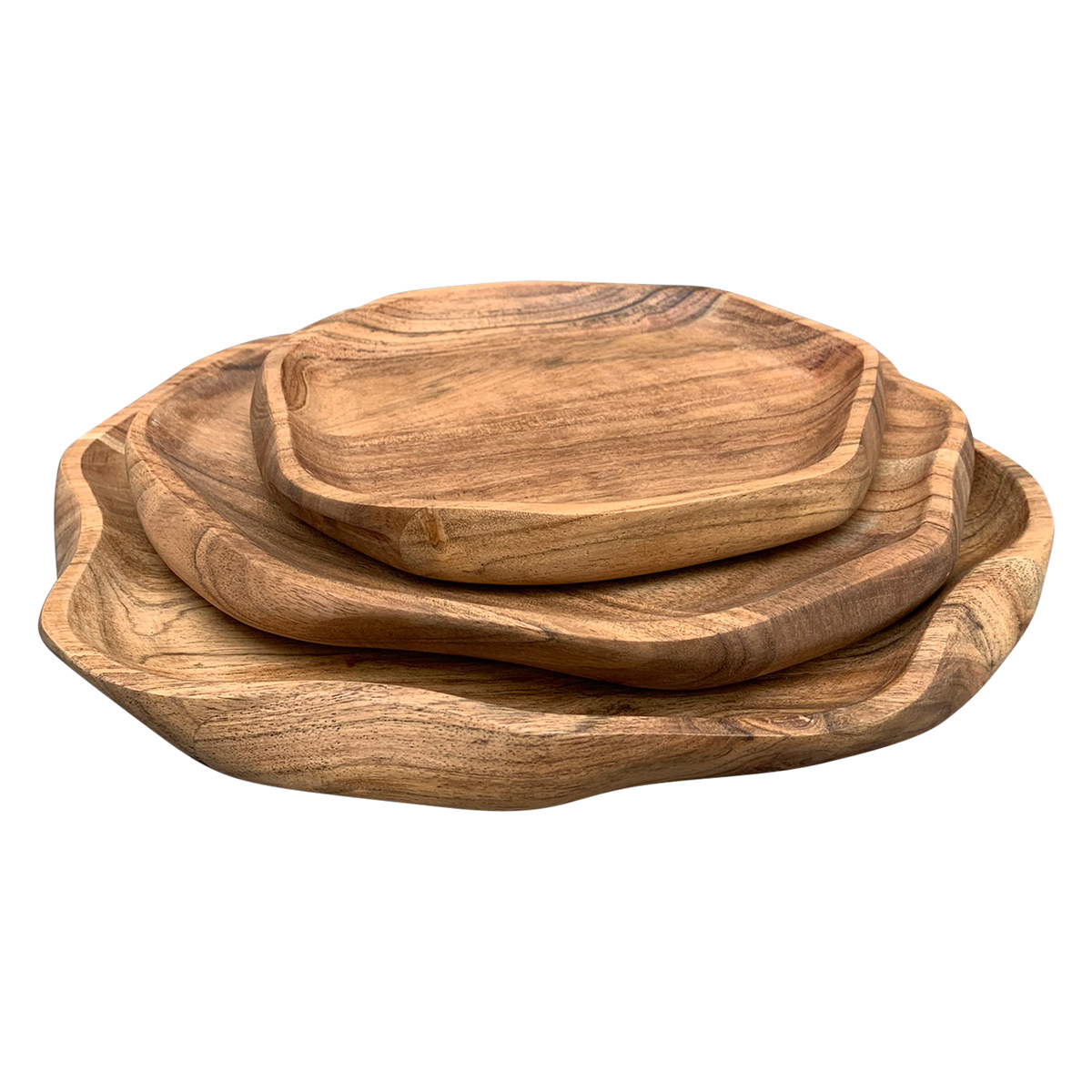 Tablett aus Naturholz, unregelmäßige Form, dekorative Holzschale, 23x22x2,5cm