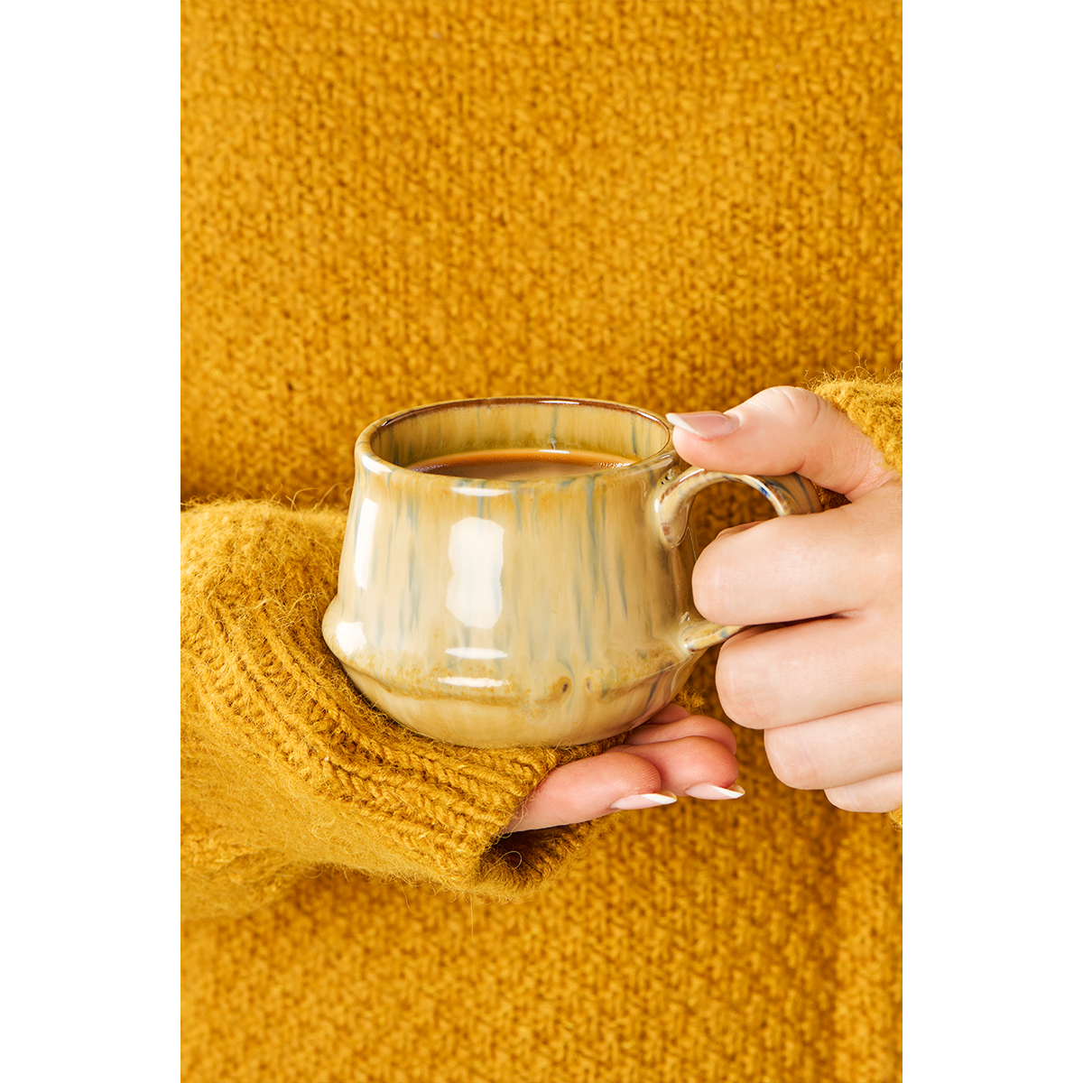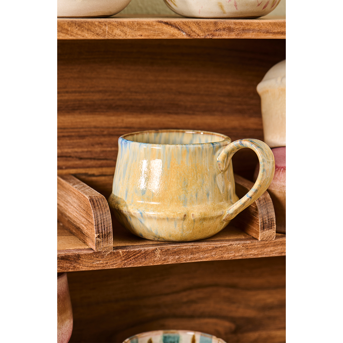 Jede Tasse ist ein kleines Kunstwerk – von Hand auf der Töpferscheibe geformt und mit einer lebendigen, reaktiven Glasur glasiert, die ihre volle Schönheit erst nach dem Brennen enthüllt.