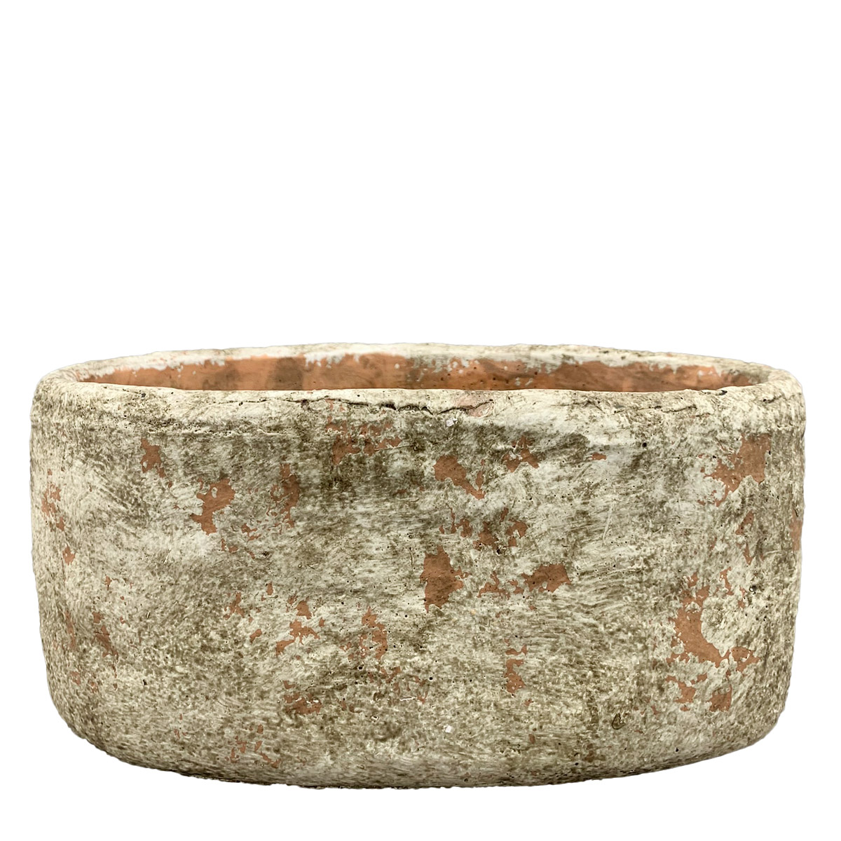 Tonschale Moola oval Shabby Chic, Zementtopf rötlich-braun, 18x9cm