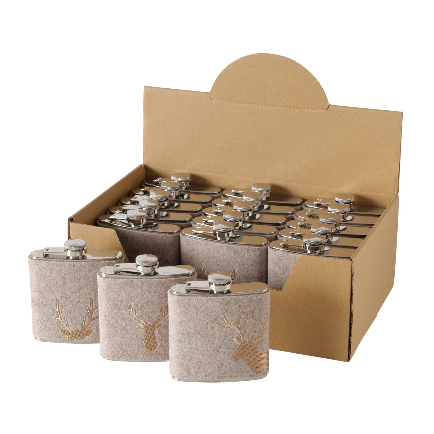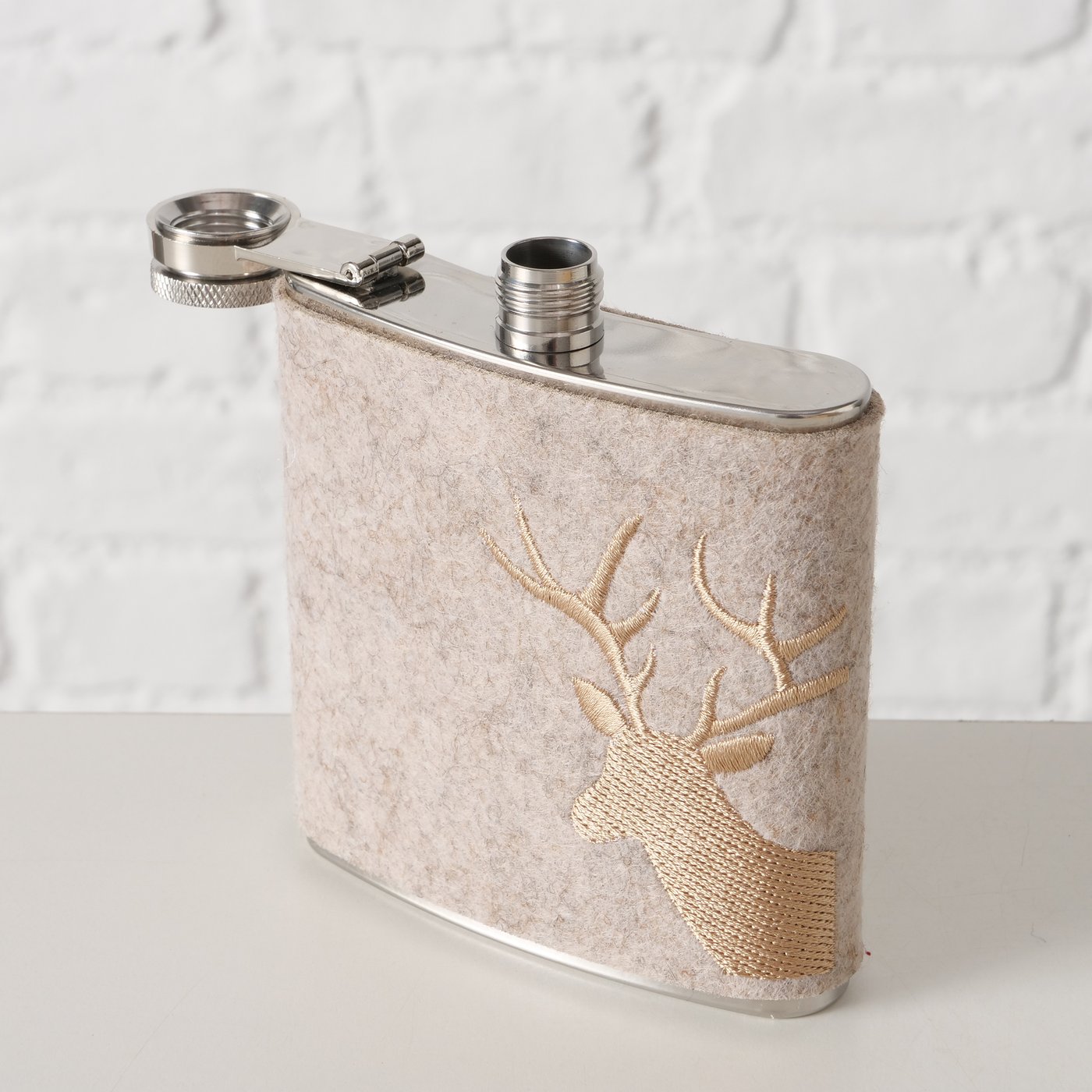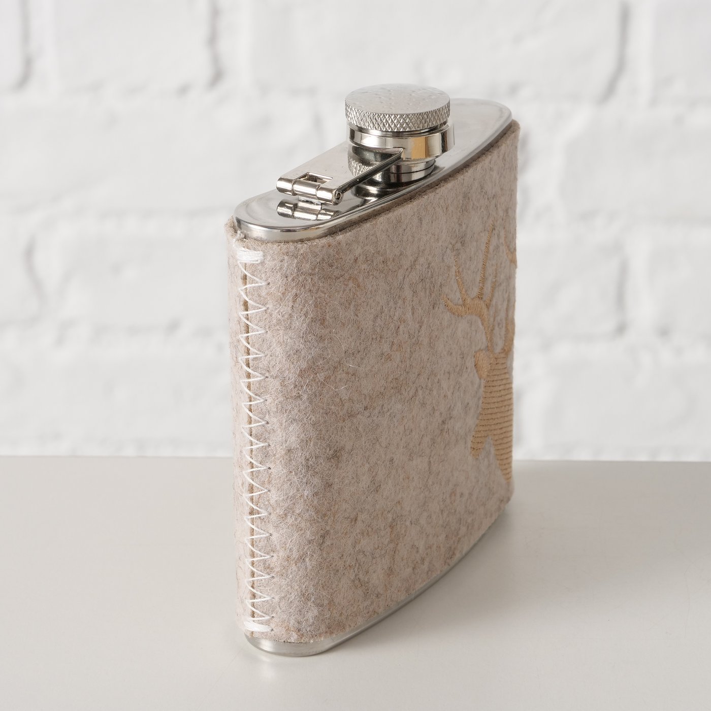 Trinkflasche Hirsch Vilbert, Flaschmann aus Filz mit Hirschkopf seitlich, 11x9cm, Boltze Home Collec