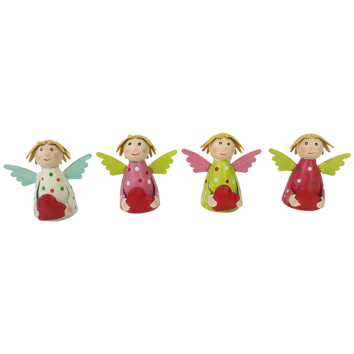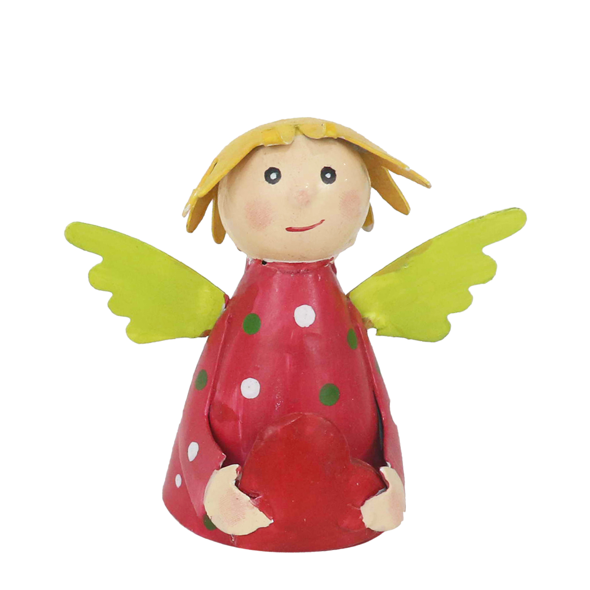 Zaunhocker Engel Schutzengel, Metallengel mit Herz und rotem Pünktchen-Kleid, 9cm