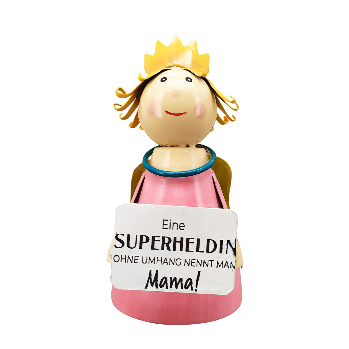 Zaunhocker Engel Schutzengel, Metallengel mit Krone und Schild: Eine Superheldin ..., 16cm... mehr