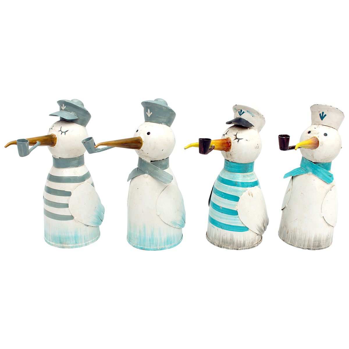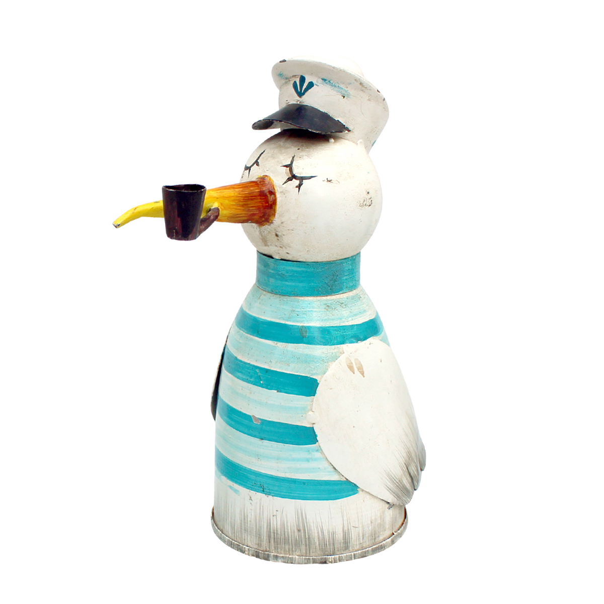 Zaunhocker Matrose Möwe, Metallvogel mit Ringelshirt blau, used look, 20cm