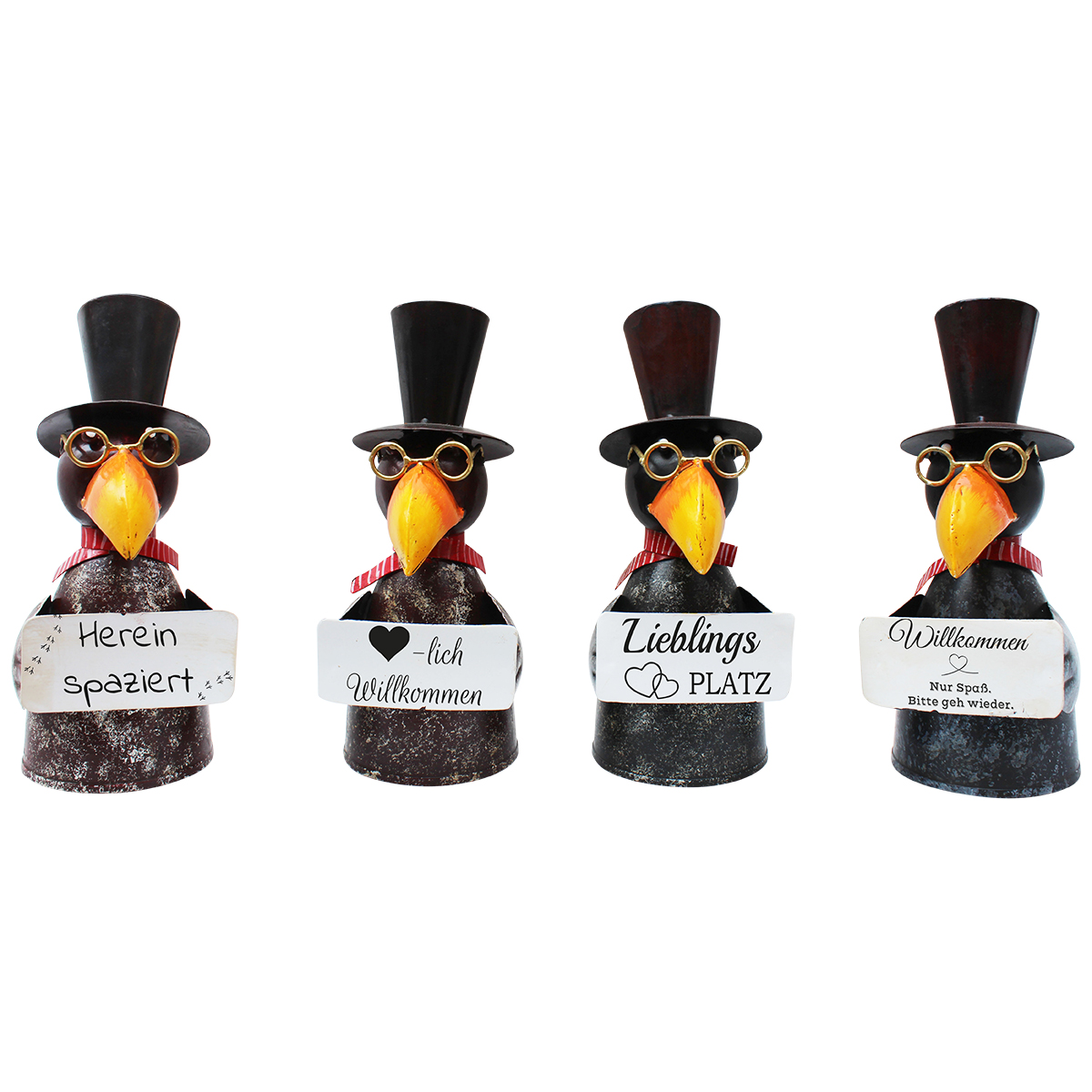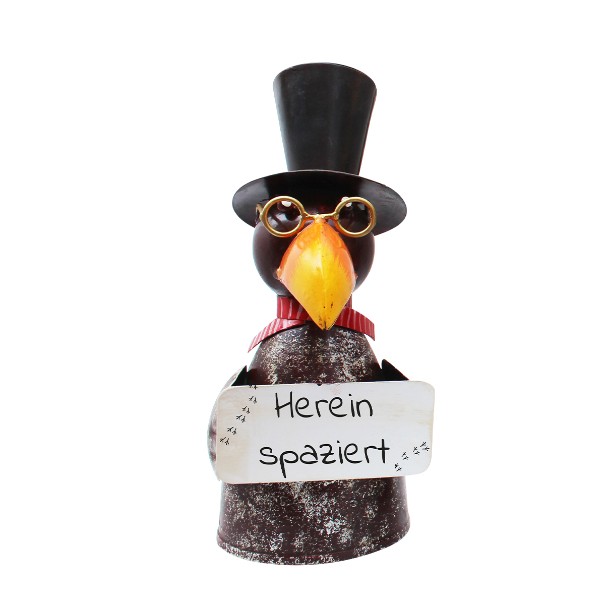 Zaunhocker Rabe Hereinspaziert, Metallrabe mit Schild, Zylinder und Brille,... mehr